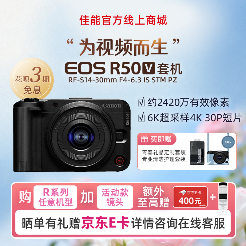 EOS R50 V黑色套机 RF-S14-30mm F4-6.3 IS STM PZ+锂电池LP-E17