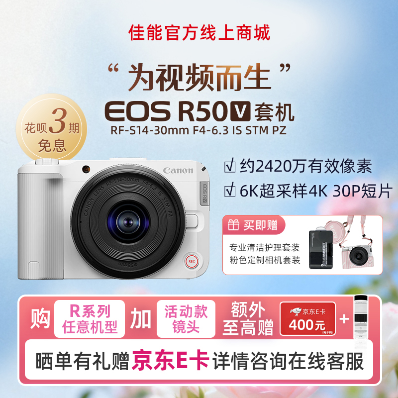 EOS R50 V白色套机 RF-S14-30mm F4-6.3 IS STM PZ+锂电池LP-E17